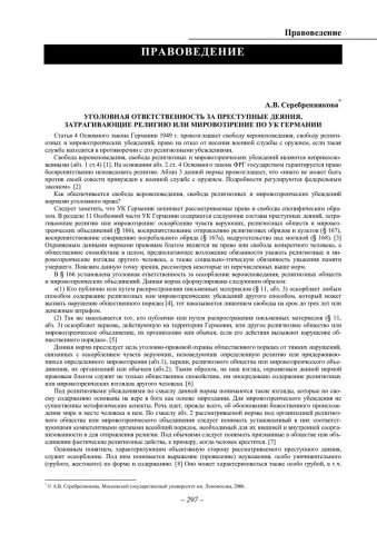 Библиографическое описание:Серебренникова, Анна Валерьевна. Уголовная ответственность за преступные деяния, затрагивающие религию или мировоззрение по УК Германии / А. В. Серебренникова. - Текст : непосредственный // Вестник Красноярского государственного университета. - 2006. - Гуманитарные науки, № 6. - С. 297-300. - Библиогр. в конце ст.