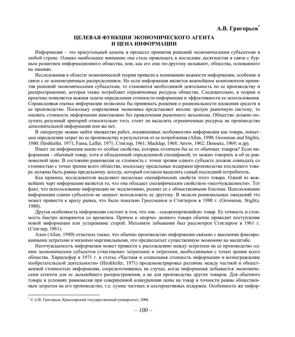 Библиографическое описание:Григорьев, Алексей Владимирович. Целевая функция экономического агента и цена информации / А. В. Григорьев. - Текст : непосредственный // Вестник Красноярского государственного университета. - 2006. - Гуманитарные науки, № 6. - С. 100-109. - Библиогр. в конце ст.