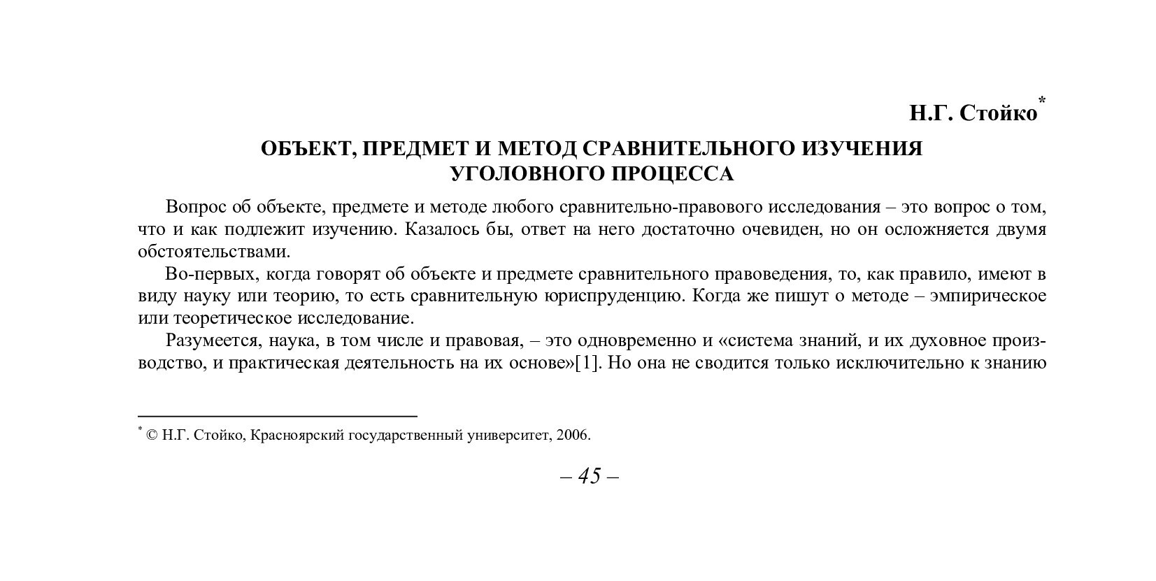 Библиографическое описание:Стойко, Николай Геннадьевич. Объект, предмет и метод сравнительного изучения уголовного процесса / Н. Г. Стойко. - Текст : непосредственный // Вестник Красноярского государственного университета. - 2006. - Гуманитарные науки, № 6. - С. 45-50. - Библиогр. в конце ст.