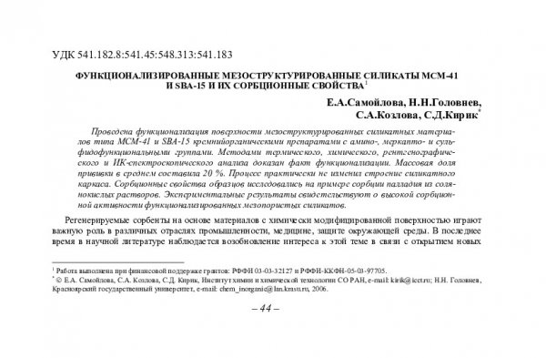 Библиографическое описание:Функционализированные мезоструктурированные силикаты MCM-41 и SBA-15 и их сорбционные свойства / Е. А. Самойлова, Н. Н. Головнев, С. А. Козлова, С. Д. Кирик. - Текст : непосредственный // Вестник Красноярского государственного университета. - 2006. - Естественные науки, № 2. - С. 44-51. - Библиогр. в конце ст.