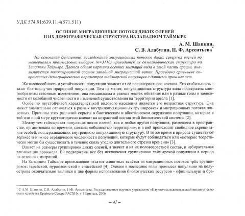 Библиографическое описание:Шапкин, А. М. Осенние миграционные потоки диких оленей и их демографическая структура на Западном Таймыре / А. М. Шапкин, С. В. Алабугин, Н. Ф. Арсентьева. - Текст : непосредственный // Вестник Красноярского государственного университета. - 2006. - Естественные науки, № 5(1). - С. 41-49. - Библиогр. в конце ст.