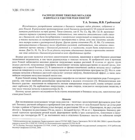 Библиографическое описание:Зотина, Татьяна Анатольевна. Распределение тяжелых металлов в биомассе рдестов реки Енисей / Т. А. Зотина, И. В. Грибовская. - Текст : непосредственный // Вестник Красноярского государственного университета. - 2006. - Естественные науки, № 5(1). - С. 78-81. - Библиогр. в конце ст.
