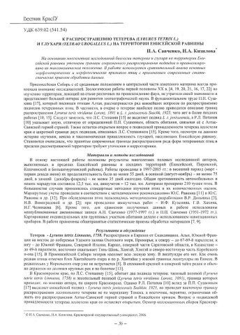 Библиографическое описание:Савченко, Игорь Александрович. К распространению тетерева (Lyrurus Tetrix L.) и глухаря (Tetrao Urogallus L.) на территории Енисейской равнины / И. А. Савченко, Н. А. Кизилова. - Текст : непосредственный // Вестник Красноярского государственного университета. - 2006. - Естественные науки, № 5(1). - С. 36-41. - Библиогр. в конце ст.