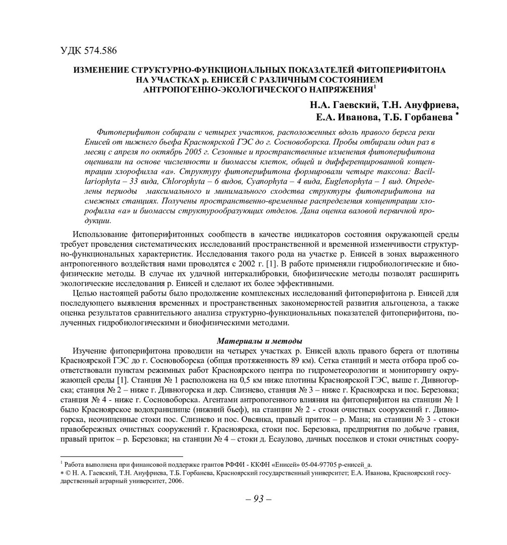 Библиографическое описание:Изменение структурно-функциональных показателей фитоперифитона на участках р. Енисей с различным состоянием антропогенно-экологического напряжения / Н. А. Гаевский, Т. Н. Ануфриева, Е. А. Иванова, Т. Б. Горбанева. - Текст : непосредственный // Вестник Красноярского государственного университета. - 2006. - Естественные науки, № 5. - С. 93-98. - Библиогр. в конце ст.