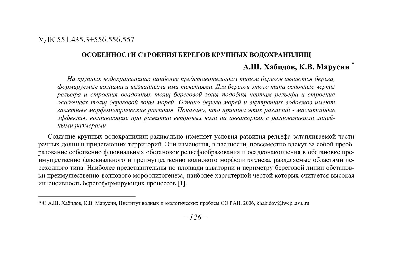 Библиографическое описание:Хабидов, Александр Шамильевич. Особенности строения берегов крупных водохранилищ / А. Ш. Хабидов, К. В. Марусин. - Текст : непосредственный // Вестник Красноярского государственного университета. - 2006. - Естественные науки, № 5. - С. 126-130. - Библиогр. в конце ст.