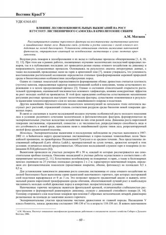 Библиографическое описание:Матвеев, А. М. Влияние лесовозобновительных выжиганий на рост и густоту лиственничного самосева в криолитозоне Сибири / А. М. Матвеев. - Текст : непосредственный // Вестник Красноярского государственного университета. - 2006. - Естественные науки, № 5. - С. 60-63. - Библиогр. в конце ст.