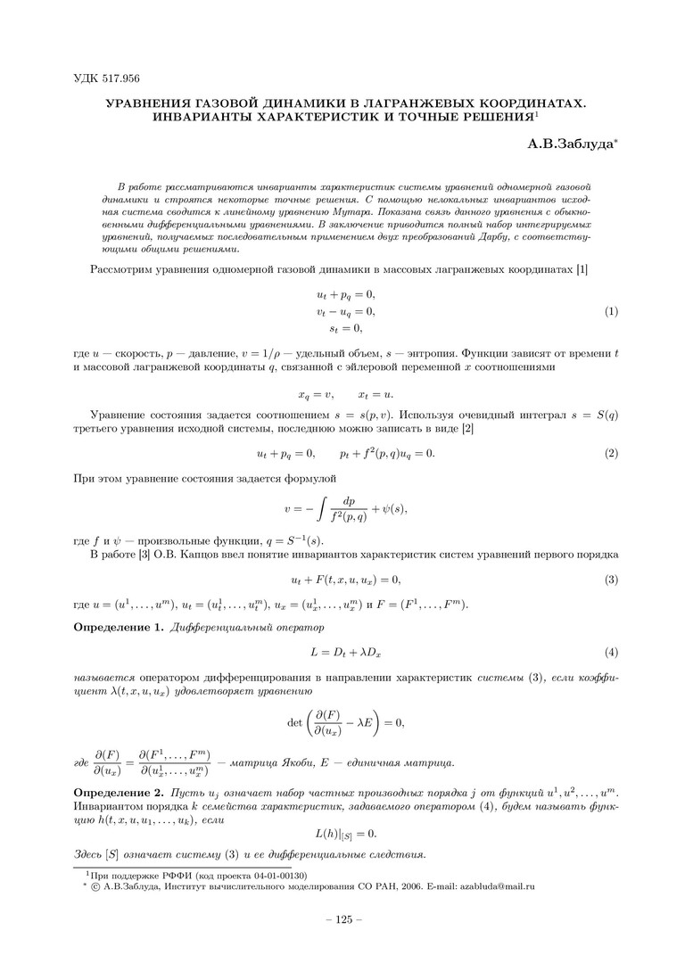 Библиографическое описание:Заблуда, А. В. Уравнения газовой динамики в лагранжевых координатах. Инварианты характеристик и точные решения / А. В. Заблуда. - Текст : непосредственный // Вестник Красноярского государственного университета. - 2006. - Физико-математические науки, № 1. - С. 125-132. - Библиогр. в конце ст.