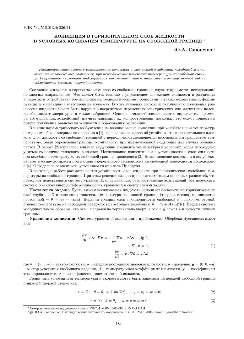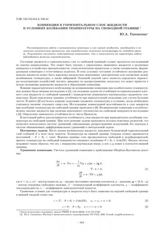 Библиографическое описание:Гапоненко, Юрий Анатольевич. Конвекция в горизонтальном слое жидкости в условиях колебания температуры на свободной границе / Ю. А. Гапоненко. - Текст : непосредственный // Вестник Красноярского государственного университета. - 2006. - Физико-математические науки, № 1. - С. 184-189. - Библиогр. в конце ст.