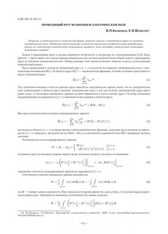 Библиографическое описание:Казанцев, Владимир Петрович. Проводящий круг во внешнем электрическом поле / В. П. Казанцев, Е. Н. Шляхтич. - Текст : непосредственный // Вестник Красноярского государственного университета. - 2006. - Физико-математические науки, № 1. - С. 21-25. - Библиогр. в конце ст.