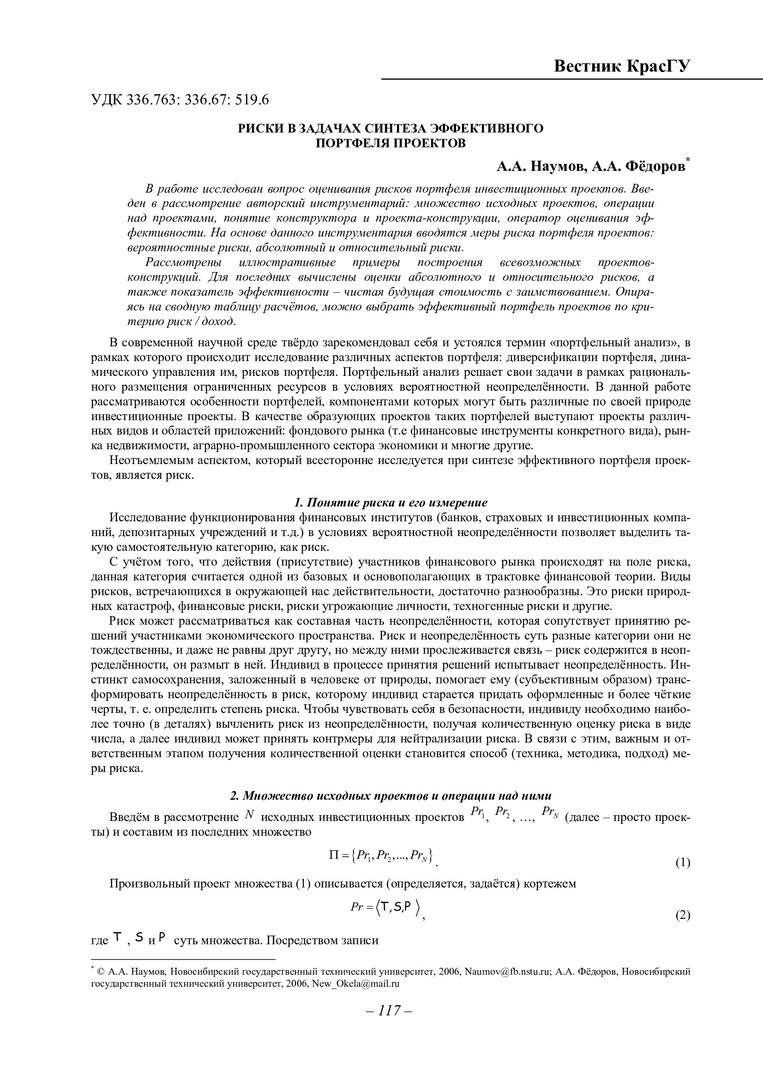 Библиографическое описание:Наумов, А. А. Риски в задачах синтеза эффективного портфеля проектов / А. А. Наумов, А. А. Федоров. - Текст : непосредственный // Вестник Красноярского государственного университета. - 2006. - Физико-математические науки, № 4. - С. 117-125. - Библиогр. в конце ст.