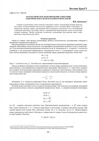 Библиографическое описание:Денисенко, В. В. Математическое моделирование генерации электрического поля в магнитосфере Земли / В. В. Денисенко. - Текст : непосредственный // Вестник Красноярского государственного университета. - 2006. - Физико-математические науки, № 4. - С. 66-73. - Библиогр. в конце ст.