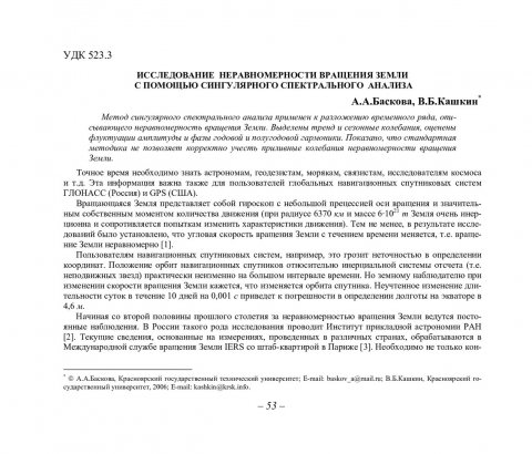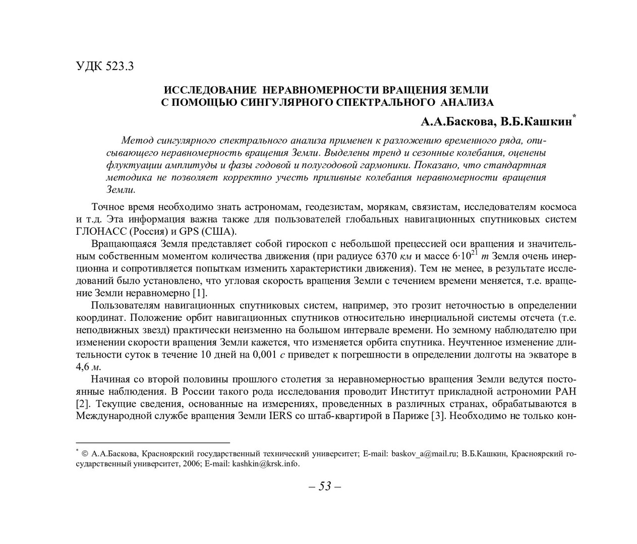 Библиографическое описание:Баскова, Анастасия Анатольевна. Исследование неравномерности вращения Земли с помощью сингулярного спектрального анализа / А. А. Баскова, В. Б. Кашкин. - Текст : непосредственный // Вестник Красноярского государственного университета. - 2006. - Физико-математические науки, № 7. - С. 53-59. - Библиогр. в конце ст.
