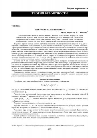 Библиографическое описание:Воробьев, Олег Юрьевич. Эвентологическая теория игр / О. Ю. Воробьев, Е. Г. Тяглова. - Текст : непосредственный // Вестник Красноярского государственного университета. - 2006. - Физико-математические науки, № 7. - С. 107-114. - Библиогр. в конце ст.
