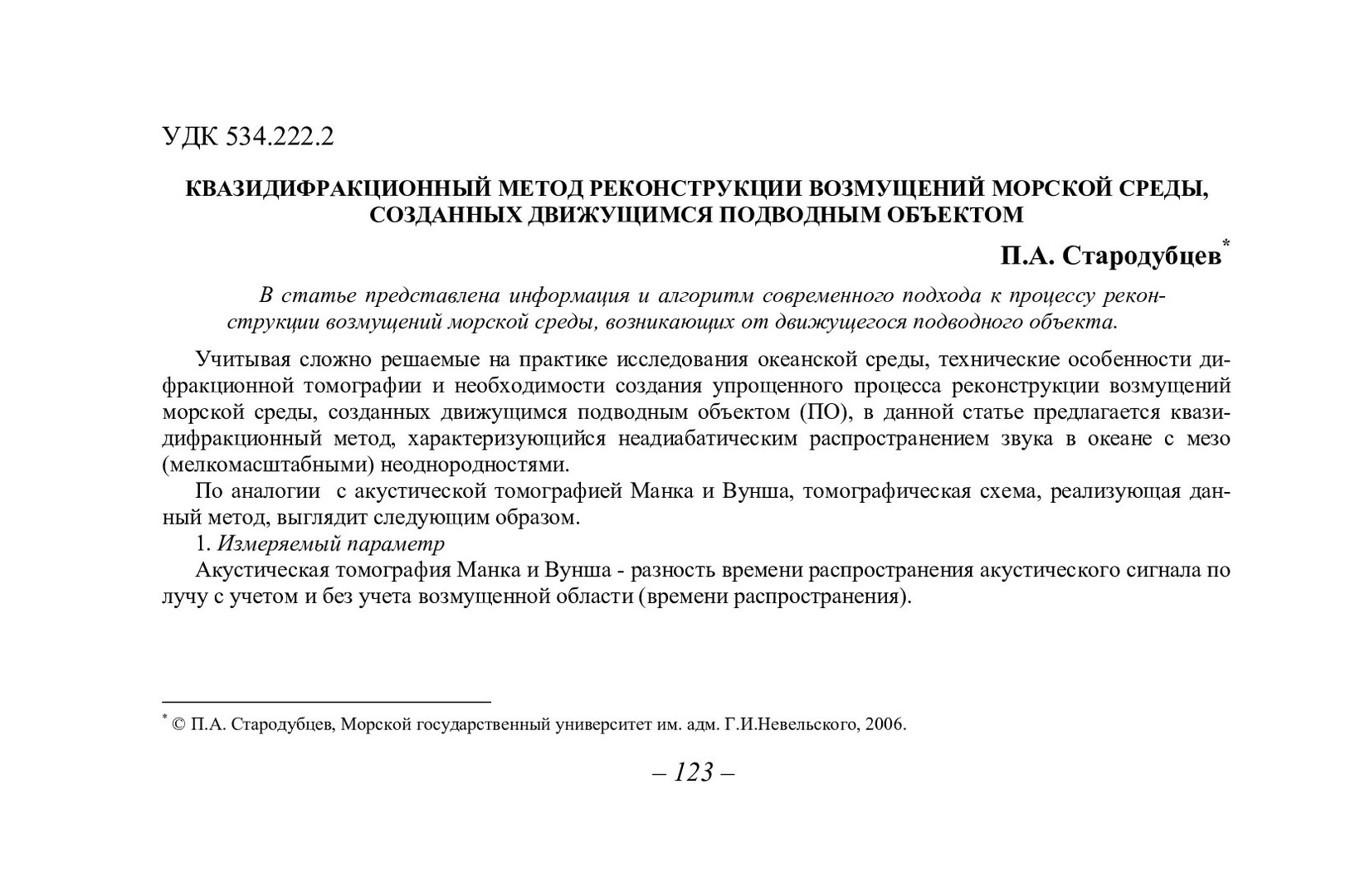 Библиографическое описание:Стародубцев, П. А. Квазидифракционный метод реконструкции возмущений морской среды, созданных движущимся подводным объектом / П. А. Стародубцев. - Текст : непосредственный // Вестник Красноярского государственного университета. - 2006. - Физико-математические науки, № 7. - С. 123-129. - Библиогр. в конце ст.