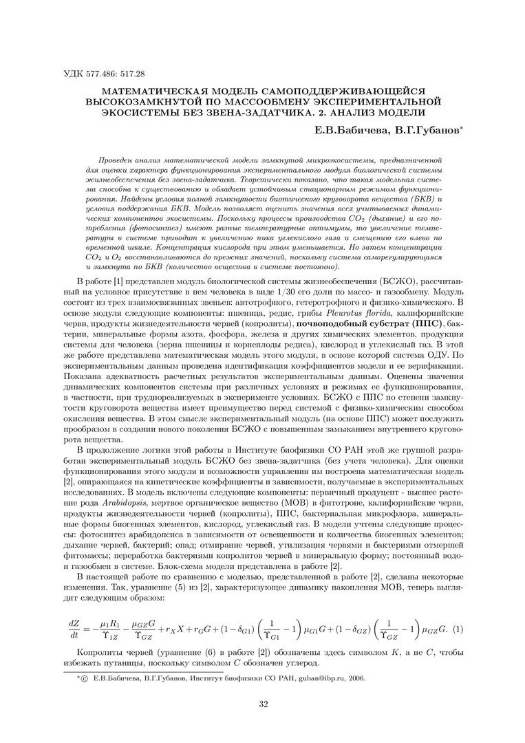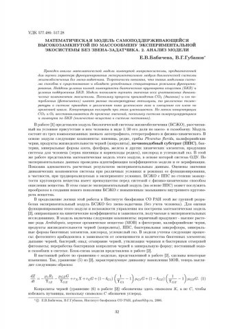 Библиографическое описание:Бабичева, Е. В. Математическая модель самоподдерживающейся высокозамкнутой по массообмену экспериментальной экосистемы без звена-задатчика. 2. Анализ модели / Е. В. Бабичева, В. Г. Губанов. - Текст : непосредственный // Вестник Красноярского государственного университета. - 2006. - Физико-математические науки, № 9. - С. 32-37. - Библиогр. в конце ст.