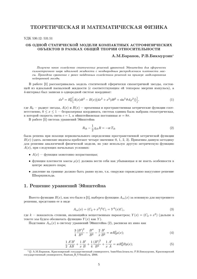 Библиографическое описание:Баранов, Александр Михайлович. Об одной статической модели компактных астрофизических объектов в рамках общей теории относительности / А. М. Баранов, Р. В. Бикмурзин. - Текст : непосредственный // Вестник Красноярского государственного университета. - 2006. - Физико-математические науки, № 9. - С. 5-9. - Библиогр. в конце ст.