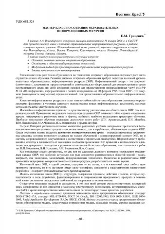 Библиографическое описание:Гриценко, Е. М. Мастер-класс по созданию образовательных информационных ресурсов / Е. М. Гриценко. - Текст : непосредственный // Вестник Красноярского государственного университета. - 2006. - Физико-математические науки, № 4. - С. 60-65. - Библиогр. в конце ст.