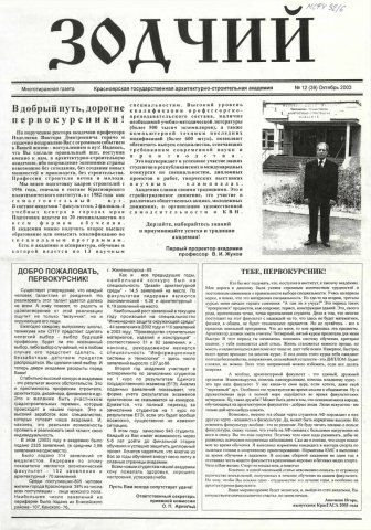 Зодчий : газета/ Красноярская государственная архитектурно-строительная академия. - Красноярск : КрасГАСА 2003г. N 12 (39) (октябрь) Полный текст ( 3.5 Мб; PDF). Ресурс свободного доступа