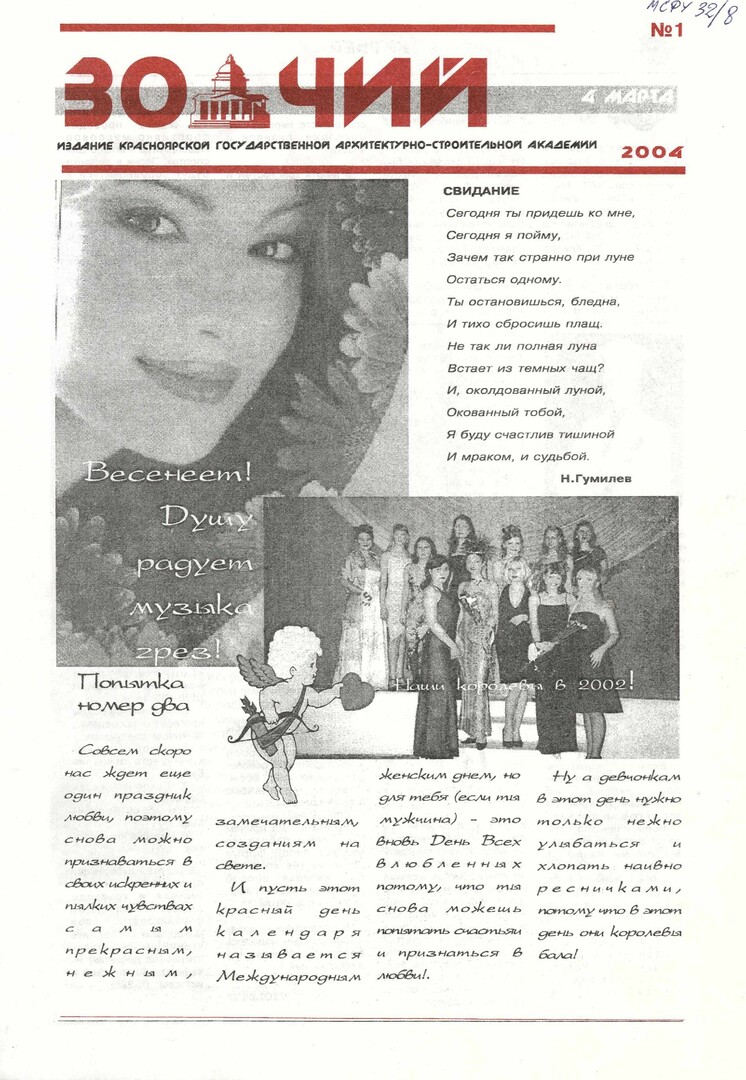 Зодчий : газета. 2004 г. № 1 (4 марта)