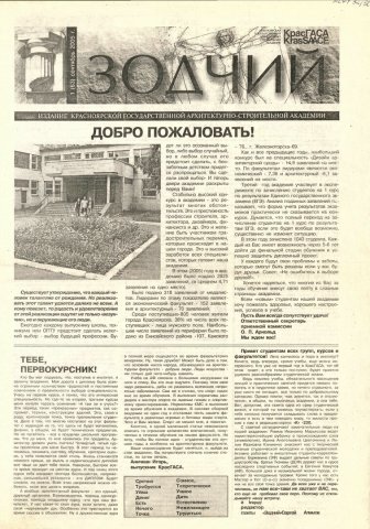 Зодчий : газета/ Красноярская государственная архитектурно-строительная академия. - Красноярск : КрасГАСА 2005г. N 1 (63) (сентябрь) Полный текст ( 8.4 Мб; PDF). Ресурс свободного доступа