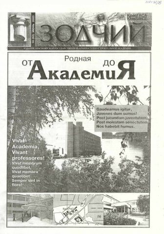 Зодчий : газета/ Красноярская государственная архитектурно-строительная академия. - Красноярск : КрасГАСА 2005г. N 18 (62) (июнь) Полный текст ( 8.0 Мб; PDF). Ресурс свободного доступа