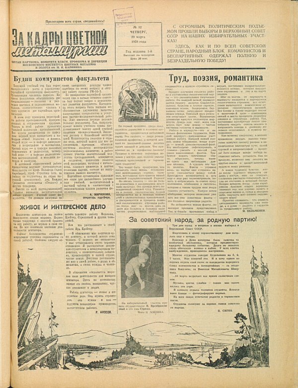 За кадры цветной металлургии : газета. 1958 г. № 12 (20 марта)выпуск журнала/газеты