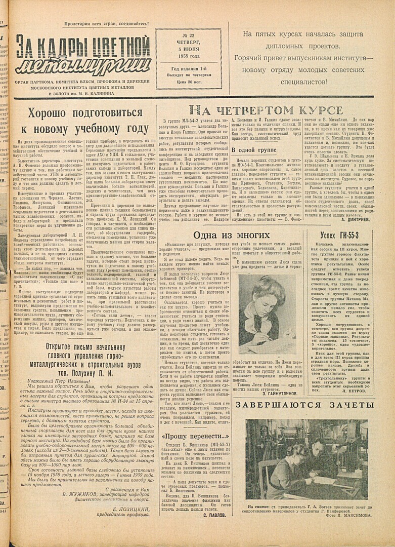 - Открытое письмо начальнику главного управления горно-металлургических и строительных вузов тов. Полухину П. И. : [о спортивно-оздоровительных лагерях для студентов]. — С. 1.