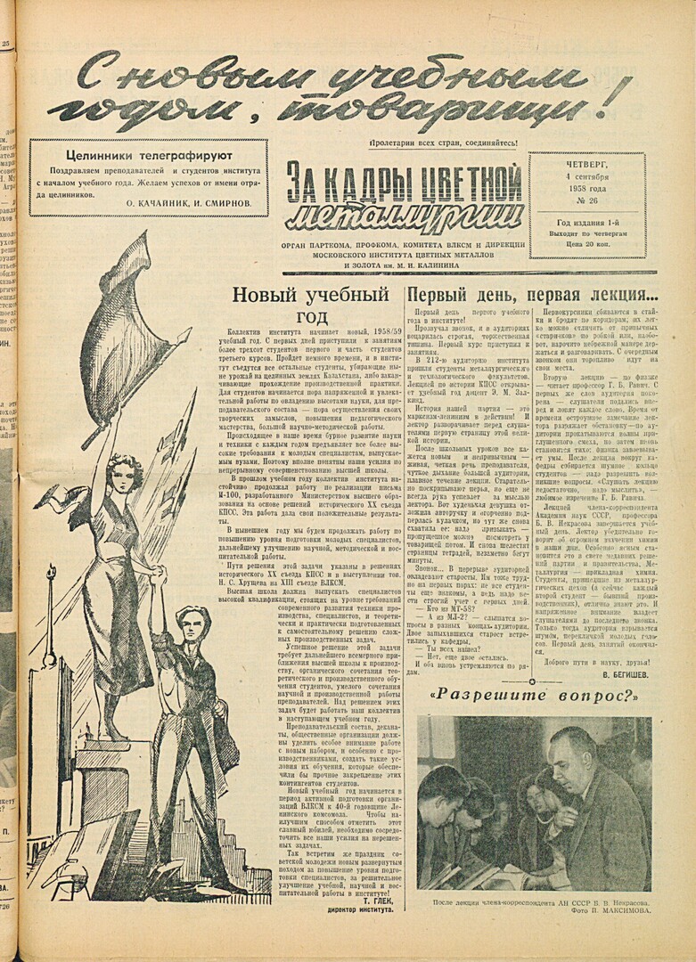 - Целинники телеграфируют : [поздравление с началом учебного года]. — С. 1.