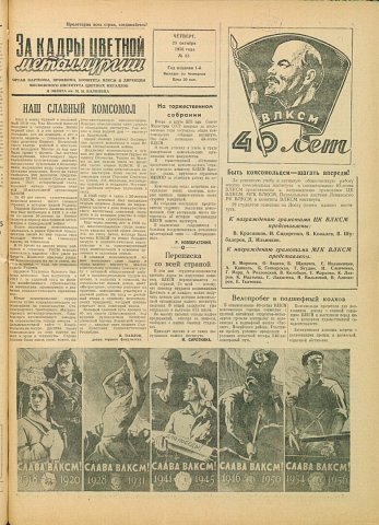 - Страничка истории нашей комсомольской организации : [письмо директора Всесоюзного научно-исследовательского горно-металлургического института цветных металлов. Окончание. Начало в № 32]. — С. 2.