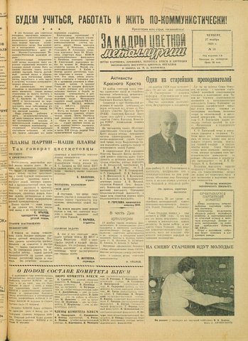 За кадры цветной металлургии : газета. 1958 г. № 38 (27 ноября)выпуск журнала/газеты