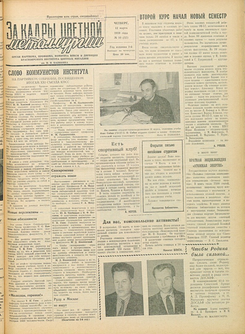 - Слово коммунистов института : [на партийном собрании, посвященном итогам XXI съезда КПСС]. — С. 1,2.