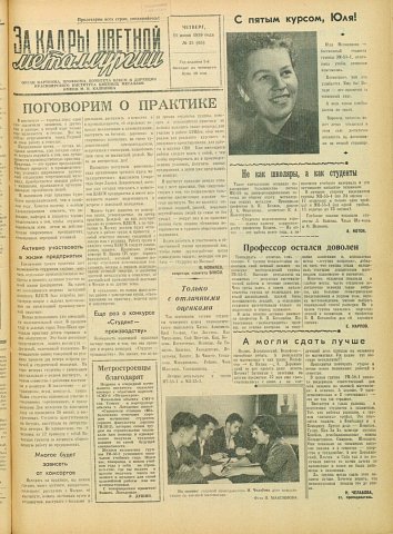 За кадры цветной металлургии : газета. 1959 г. № 23 (65) (11 июня)выпуск журнала/газеты