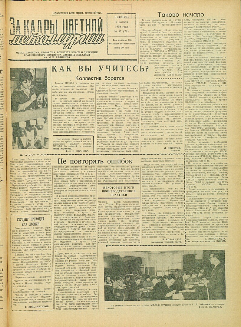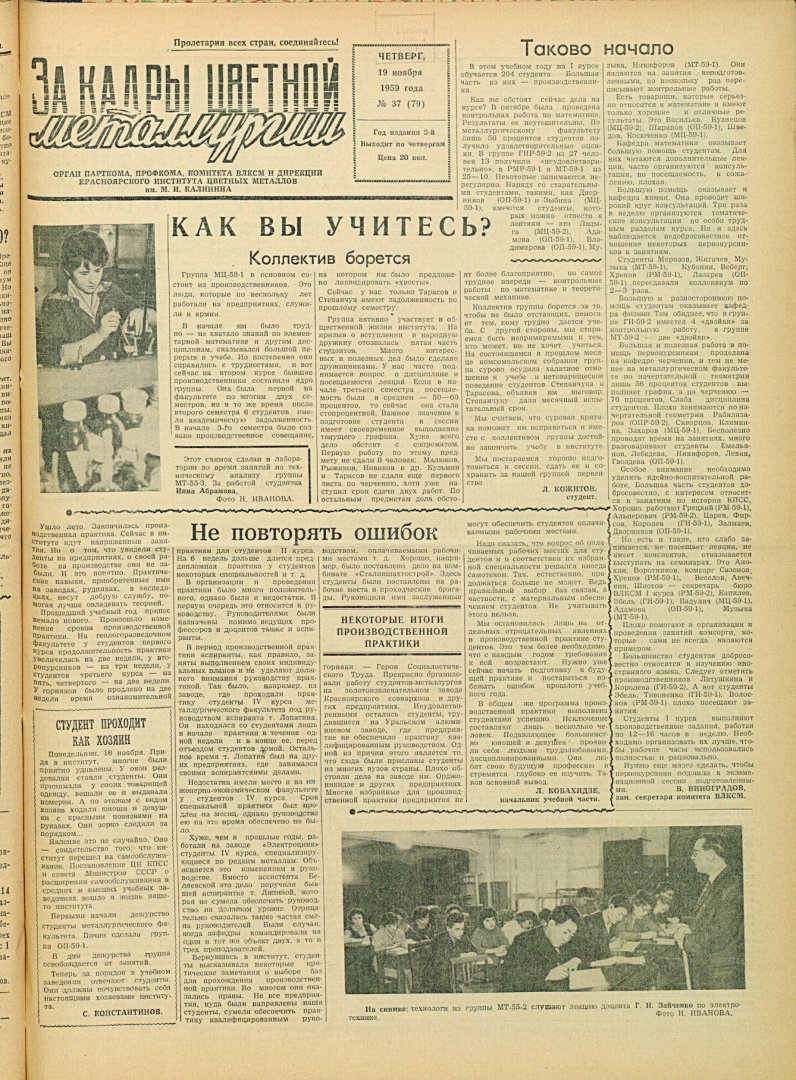 - Не повторять ошибок : [некоторые итоги производственной практики]. — С. 1.