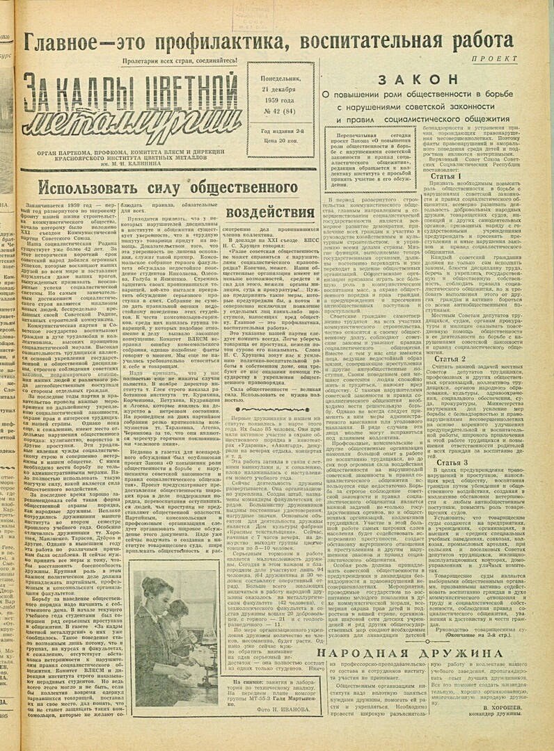 - Закон "О повышении роли общественности в борьбе с нарушениями советской законности и правил социалистического общежития : [проект]. — С. 1,2.