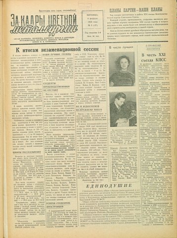 - Из истории нашего института : [история Московского института цветных металлов и золота им. М. И. Калинина. Начало. Окончание в № 8 за 1959 г.]. — С. 2.