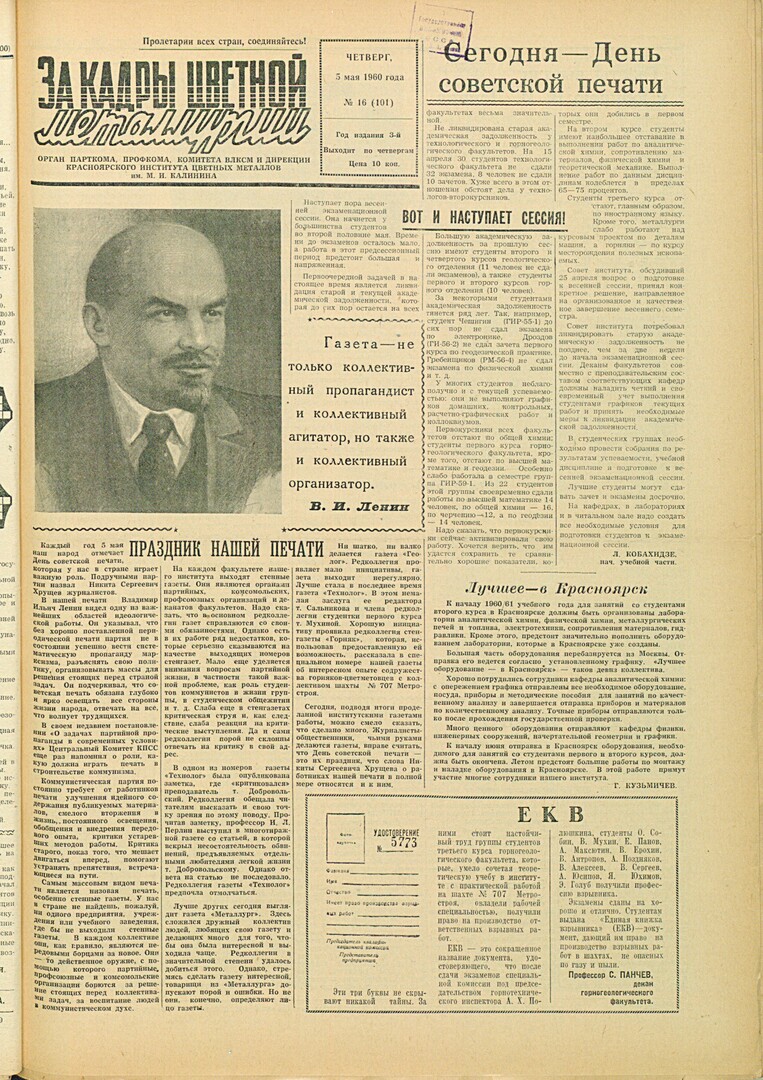 - Праздник нашей печати : [5 мая - День советской печати]. — С. 1.