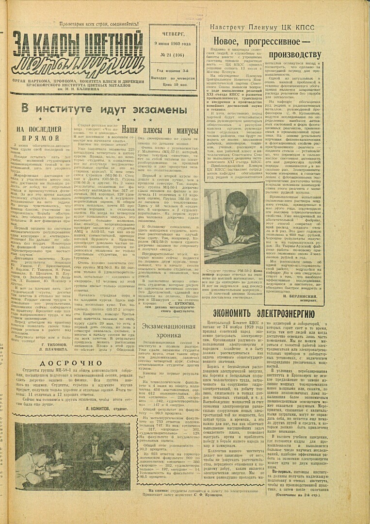 - Наши плюсы и минусы : [первые итоги экзаменов на металлургическом факультете]. — С. 1.