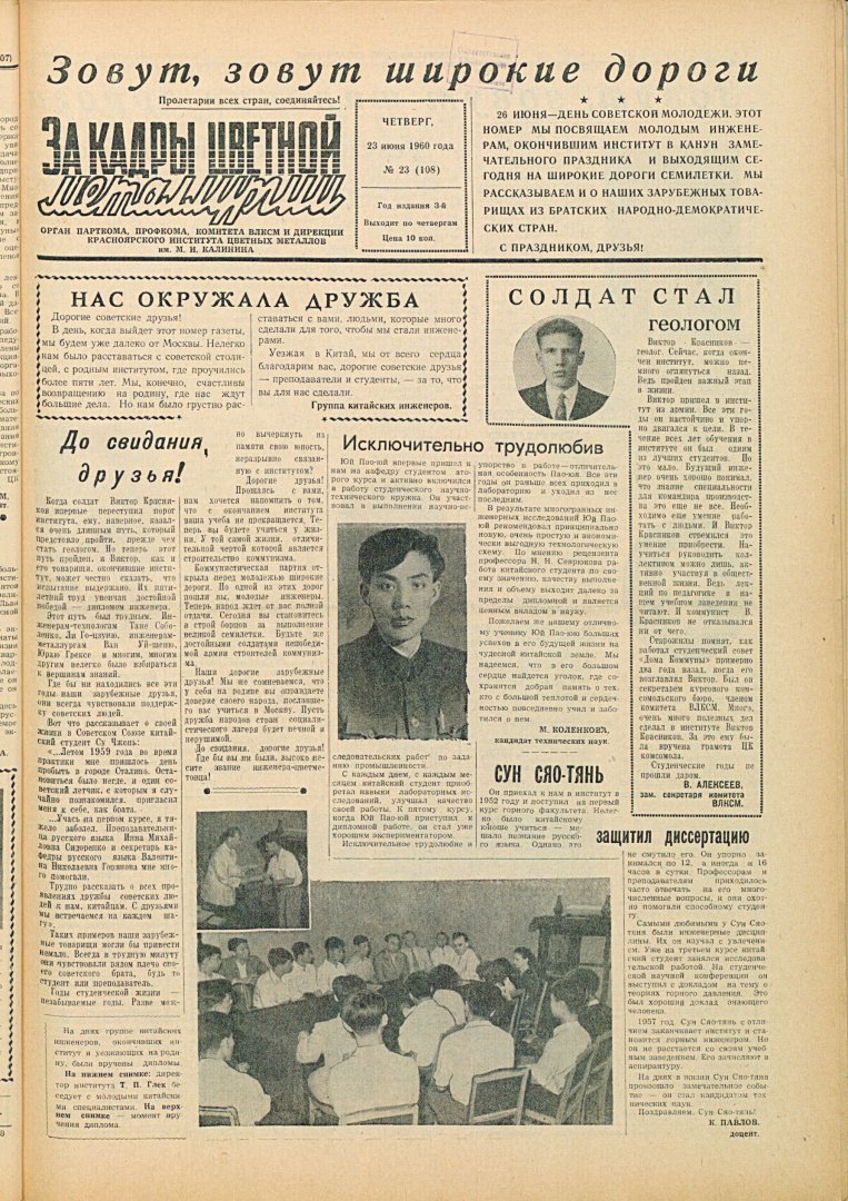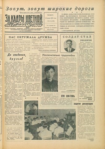За кадры цветной металлургии : газета. 1960 г. № 23 (108) (23 июня)выпуск журнала/газеты