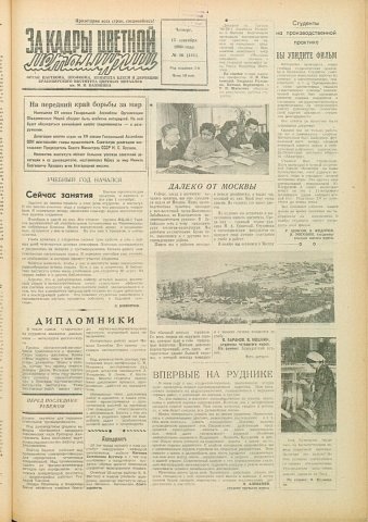 За кадры цветной металлургии : газета. 1960 г. № 26 (111) (15 сентября)выпуск журнала/газеты