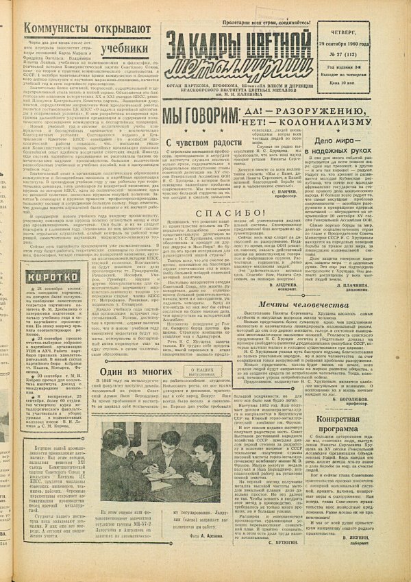 - Мечты человечества : [предложение Н. С. Хрущева об окончательной ликвидации колониального режима]. — С. 1.