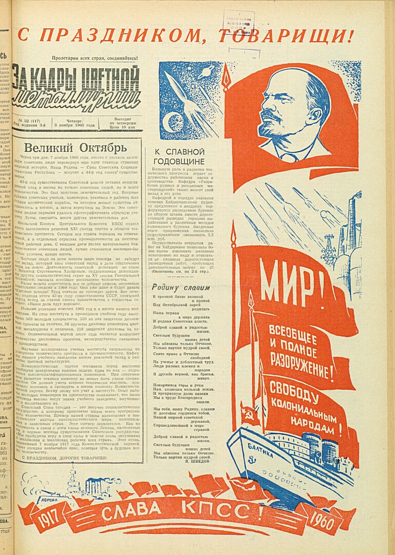 - К славной годовщине : [о работе кафедр "Разработки рудных и россыпных месторождений", "Редких металлов и порошковой металлургии", "Политэкономии" и учебно-производственных мастерских]. — С. 1,2.