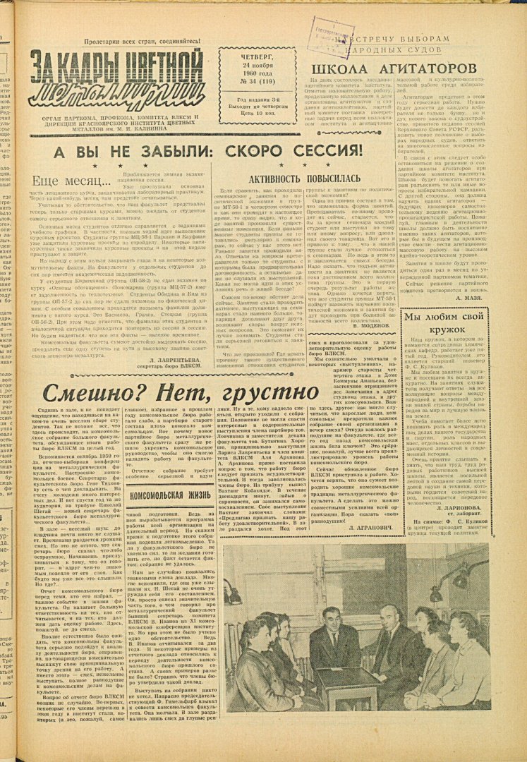 - Смешно? Нет, грустно : [с отчетно-выборного комсомольского собрания на факультете]. — С. 1.