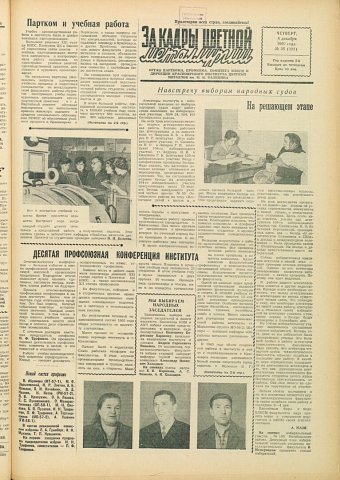 За кадры цветной металлургии : газета. 1960 г. № 36 (121) (8 декабря)выпуск журнала/газеты