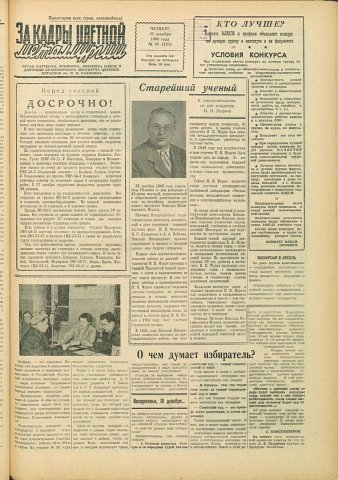 - О чем думает избиратель? : [на избирательном участке (выборы 18 декабря 1960 г.) : на фото: член избирательной комиссии участка № 104 А. В. Курдюмов вручает избирателю бюллетень]. — С. 1.