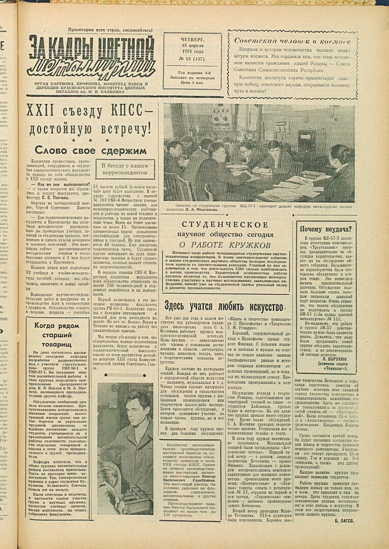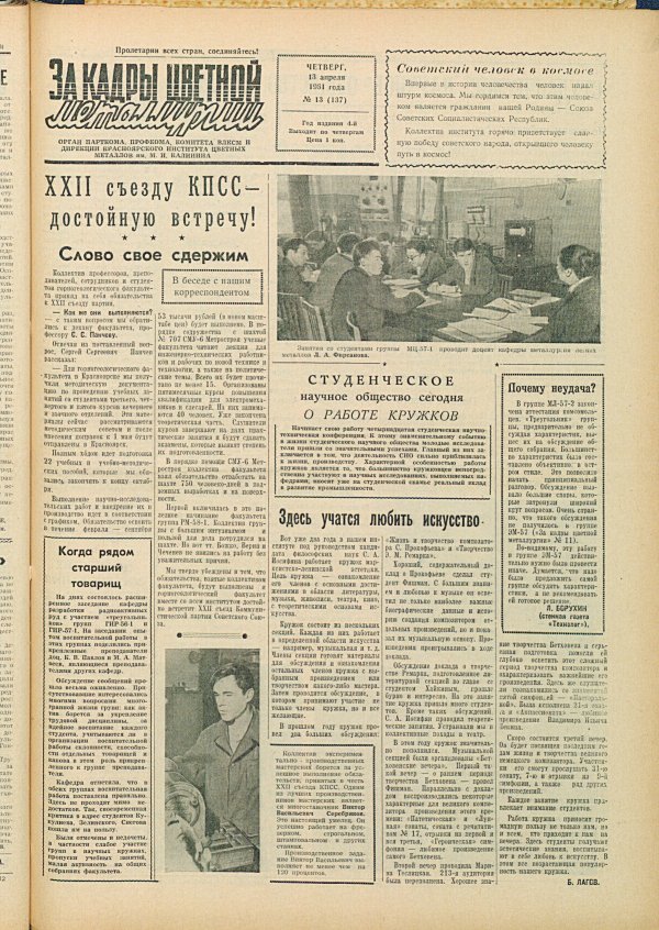 - Студенческое научное общество. Для производства : [кружок кафедры металлургии редких металлов]. — С. 2.