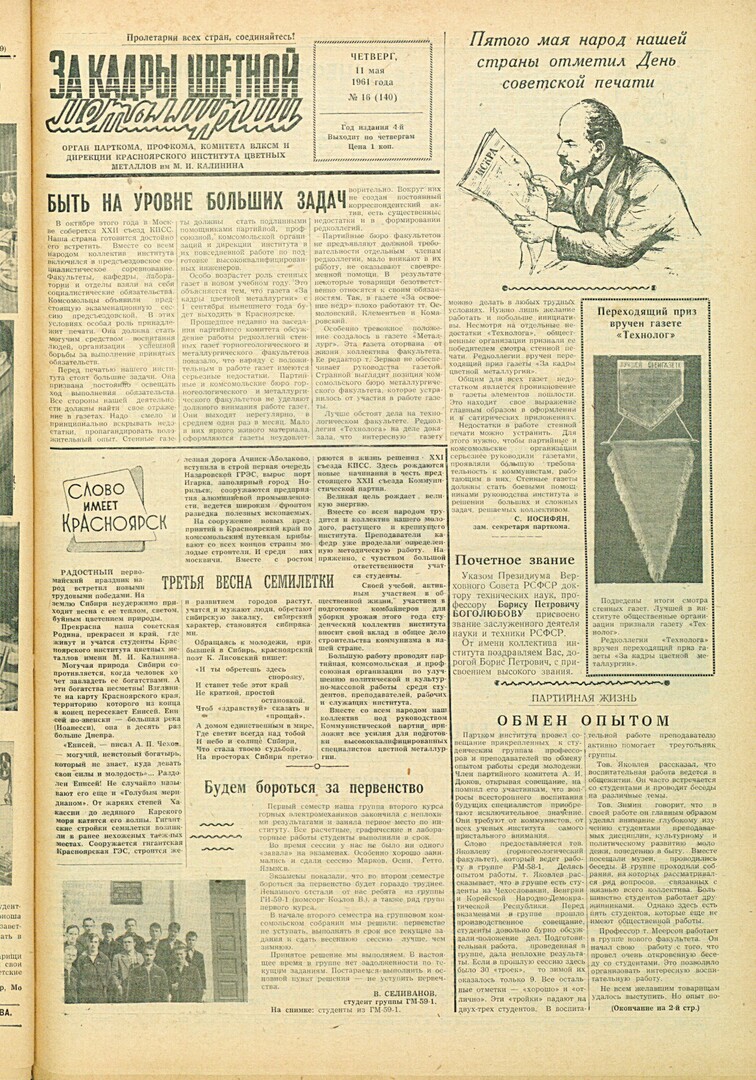 - Третья весна семилетки : [о работе коллектива КИЦМ]. — С. 1.