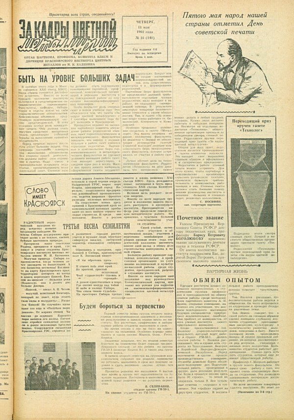 - Быть на уровне больших задач : [задачи печати в институте]. — С. 1.
