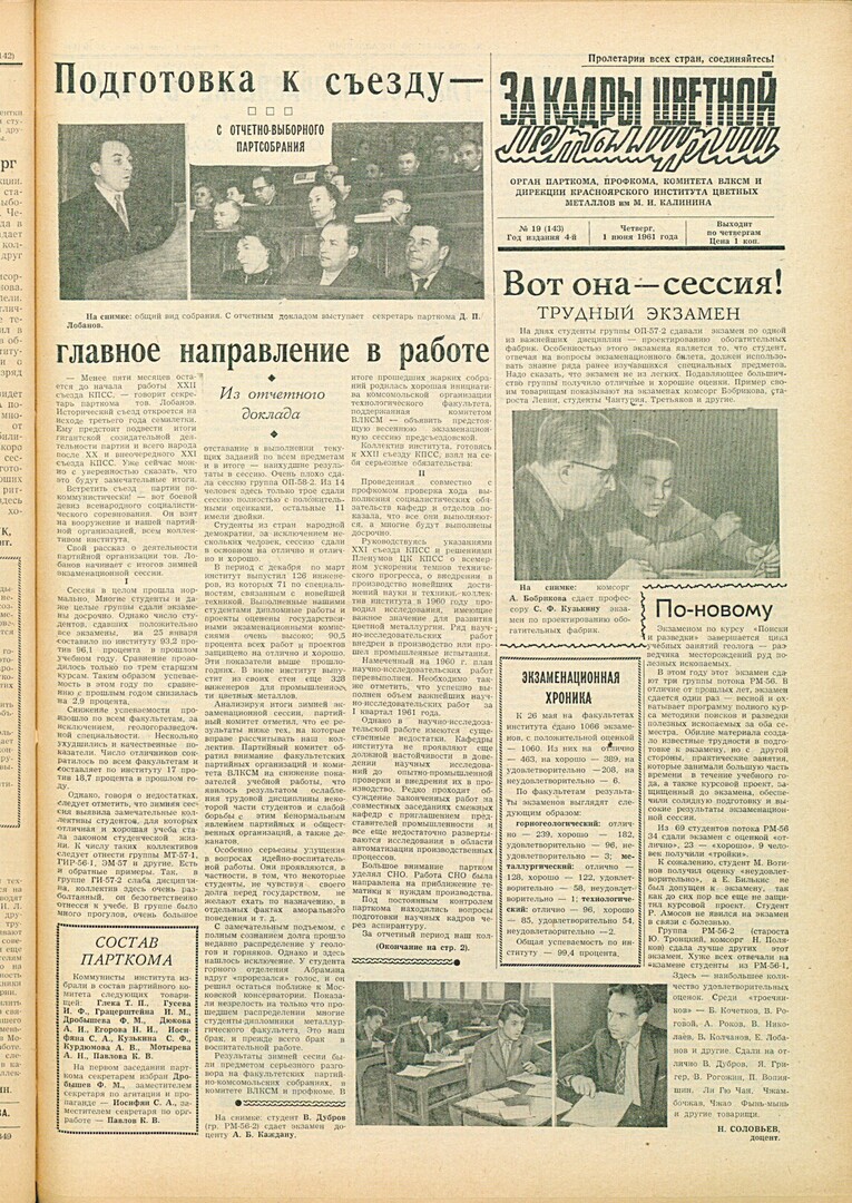 - Трудный экзамен : [сдача экзамена по проектированию обогатительных фабрик гр. ОП-57-2 : на фото: комсорг А. Бобрикова сдает профессору С. Ф. Кузькину экзамен]. — С. 1.