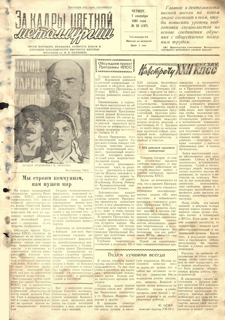 - Мы строим коммунизм, нам нужен мир : [митинг, посвященный обсуждению проекта Программы КПСС]. — С. 1.