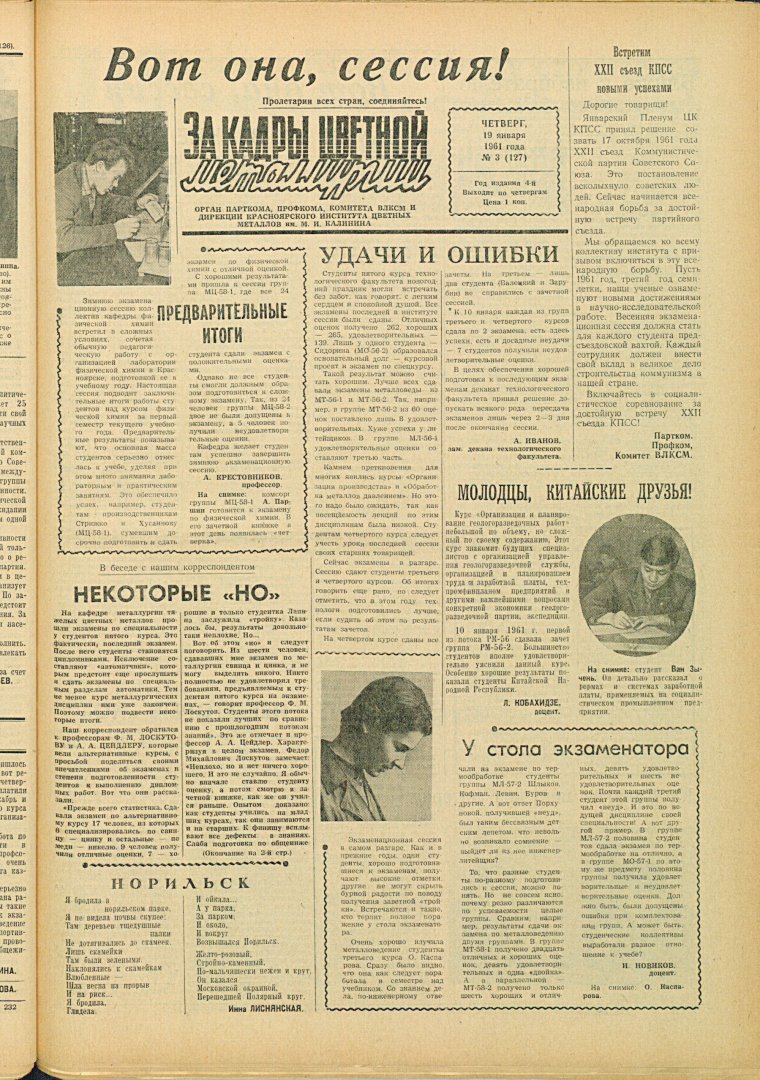 - Некоторые "но" : [беседа с профессорами Ф. М. Лоскутовым и А. А. Цейдлерым об экзаменах и степени подготовленности студентов к выполнению дипломных работ]. — С. 1,2.